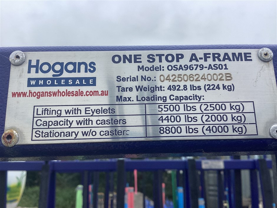 • One Stop A Frame, Model: OSA9679-AS01, On Casters, Forklift Pockets, Capacity (Lifting With Eyelets: 2500kg, With Casters: 2000kg, Stationary Without Casters: 4000kg), Photos Indicative