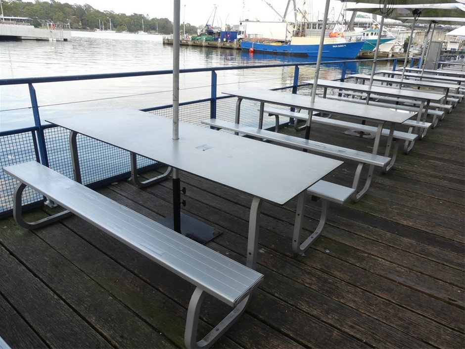 Alfresco Table And Bench Setting With Umbrella (Qty 6)
