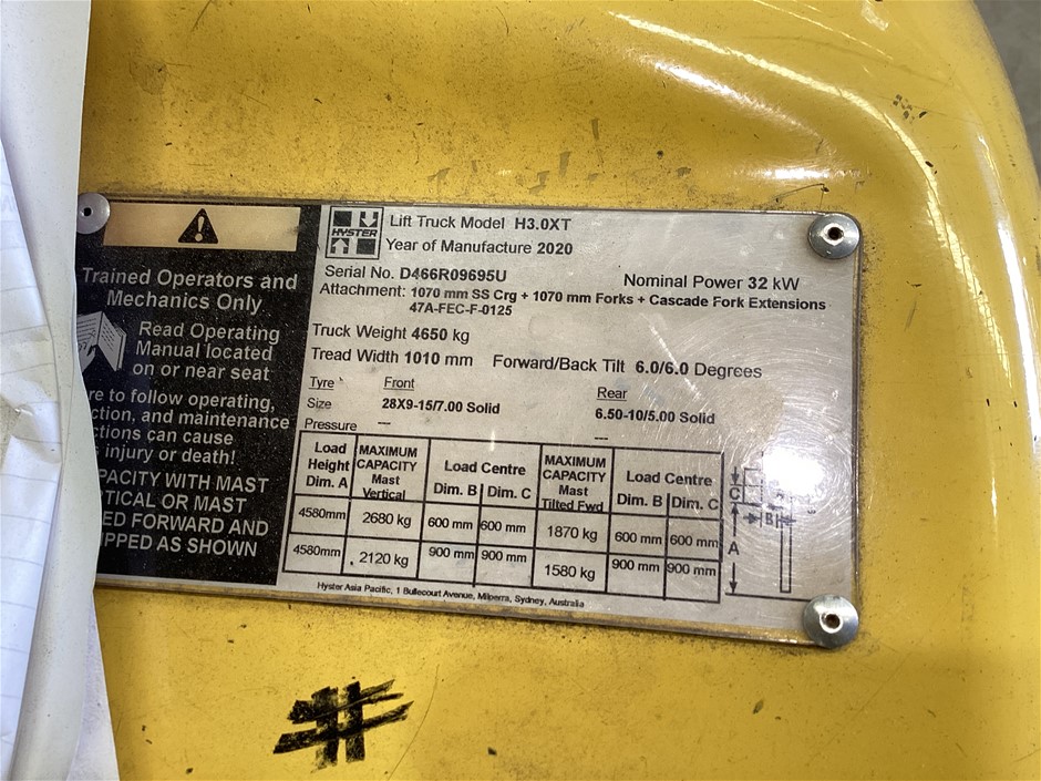 2020 Hyster H3.0XT 4 Wheel Counterbalance Forklift