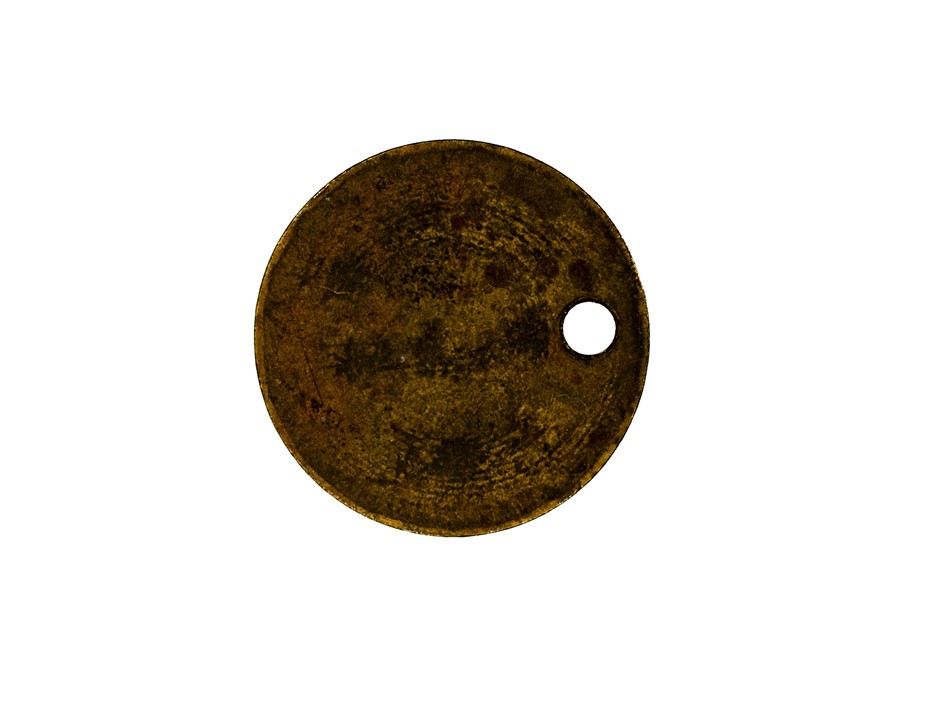 E.C.Ducat 1/2 Loaf Cust. brass bread token. Pierced at left. Rare. Approx. 6.4gm. 25mm (Dia)