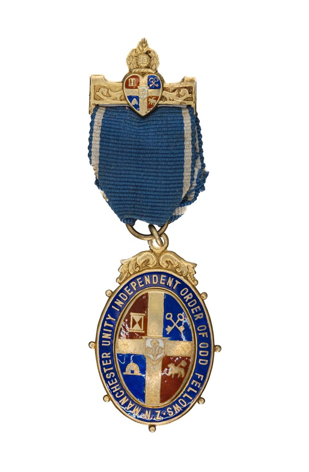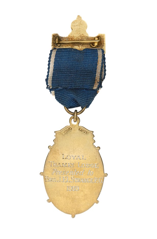 1959 Manchester Unity Independent Order of Odd Fellows N.Z. Silver Medal with ring top suspension, ribbon & bar with pin back, Silver by M.&T.LD. Reverse inscribed `Loyal Thames Lodge Presented to Bro.J.EL.Stramge P.G. 1959`. Approx. 26gm. 48 (l) x 31mm (w)
