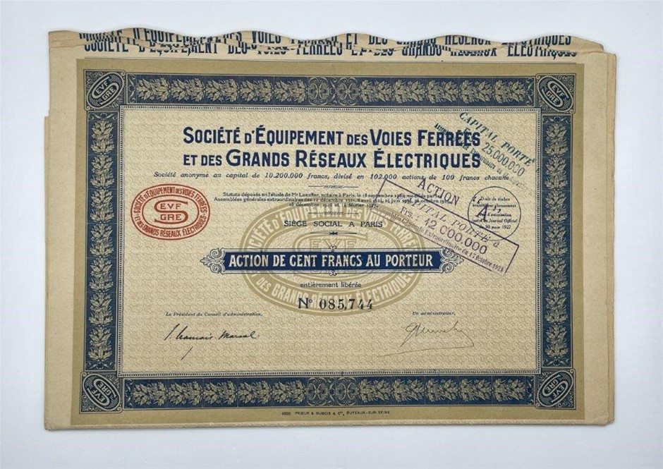 Approx.. 56 x Asstd France Bonds & share scripts, c. 1927/29