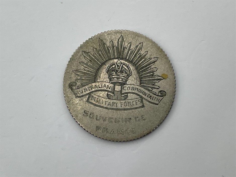 • 1 x Australian Commonwealth Military Forces, Souvenir De France, Silver, 22mm dia, approx. weight: 4.53gms