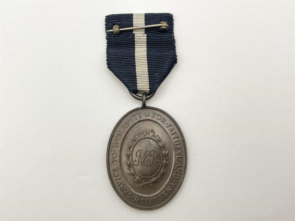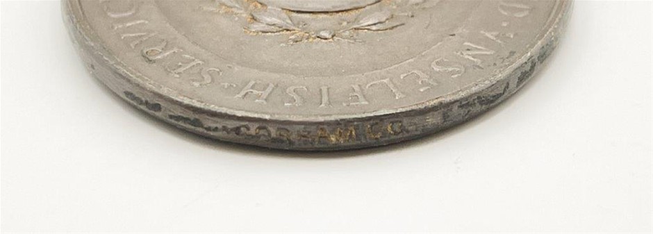 • With ring suspension, dark blue and white ribbon, top badge attachment on ribbon. Made by Gorham. Co. New York. Only 100 Struck and never issued. Approx. 38 x 29mm.