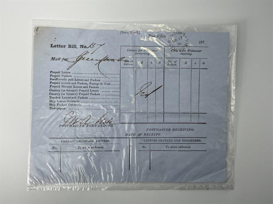 • 1 x letter bill Newtown Tasmania, 1874.
