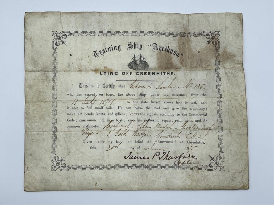 3 x Great Britain Arethusa Training Ship medals & certificate