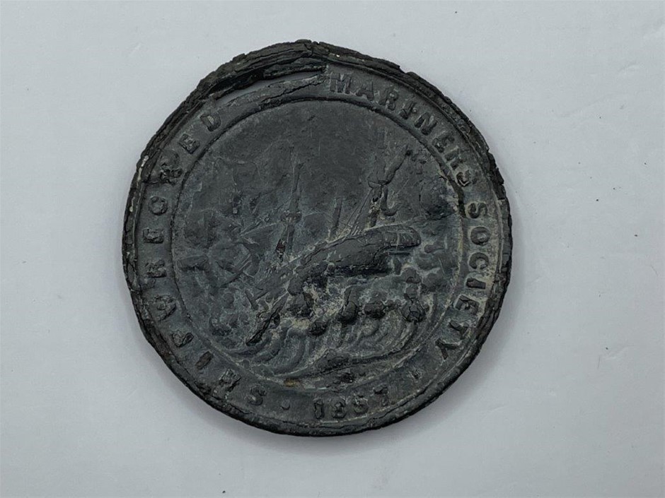• 1 x Small medal of the Shipwrecked Mariners Society in base metal