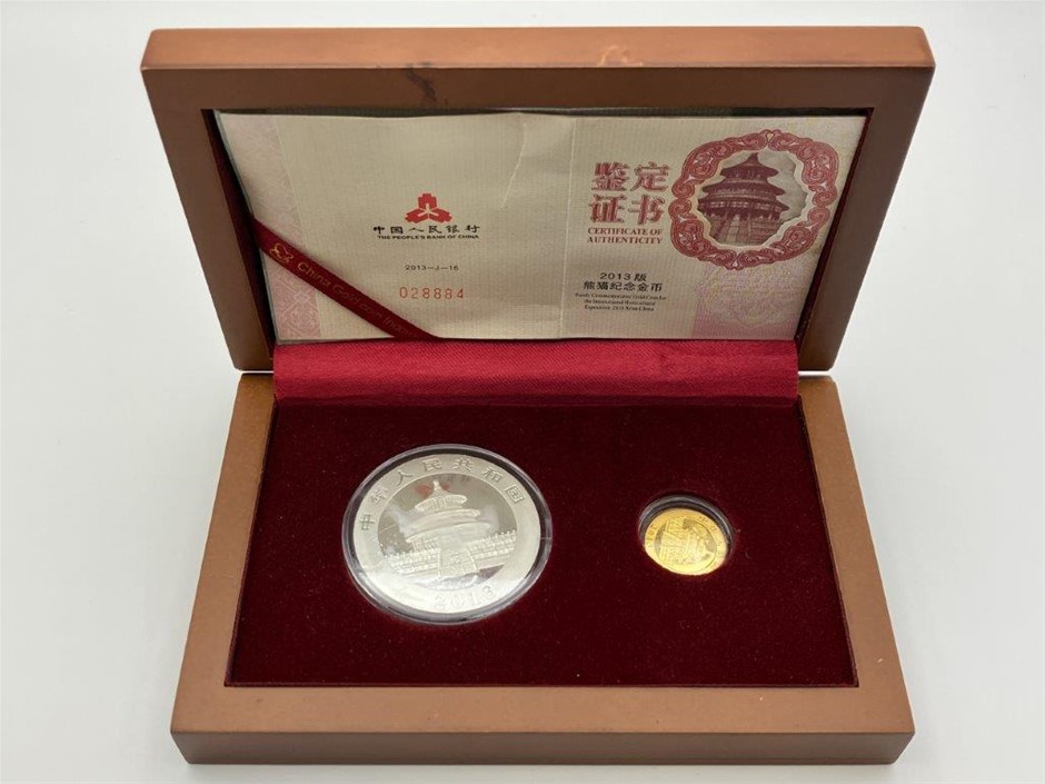 • 1 x China, silver plated `50 yuan` and silver `10 yuan` set, 2013 Panda. In case of issue with certificates, uncirculated