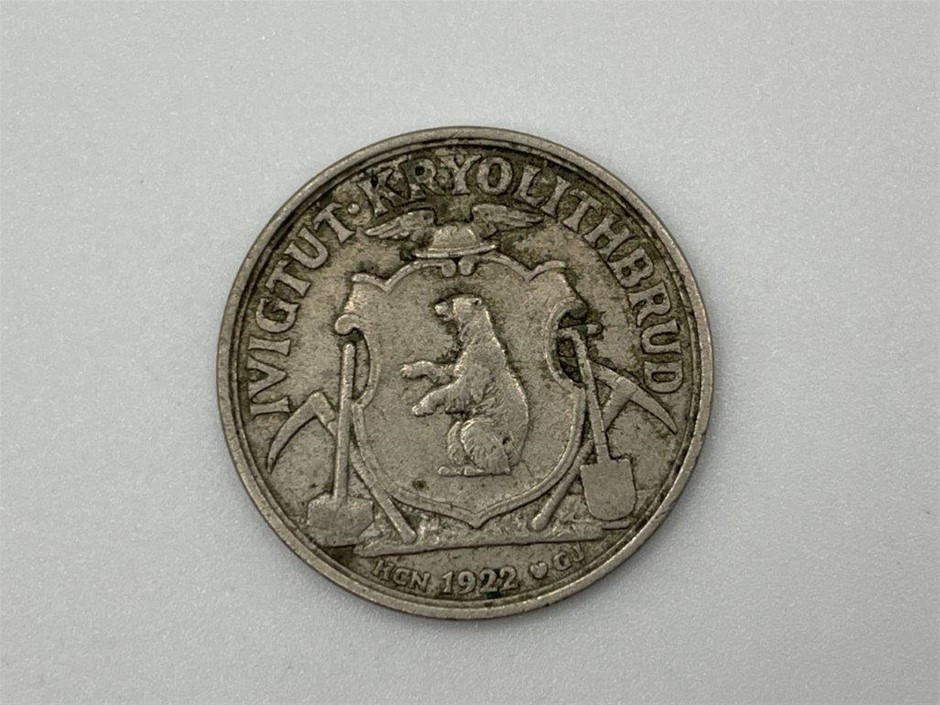 • 1 x Kryolite Mine 10 ore , 1 x 50 ore 1922, 1 x Thule Kap York 5, 1 x 25 ore 1910 in aluminium, very fine-extremely fine