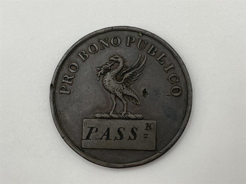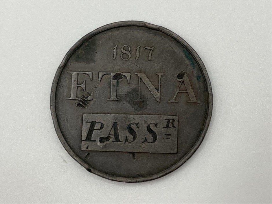 • 1 x Liverpool, Etna (passenger ticket) 1817 in copper 34mm (dia), stamped pass. both sides (D&W.333/25; M.5898), surface knocks otherwise very fine