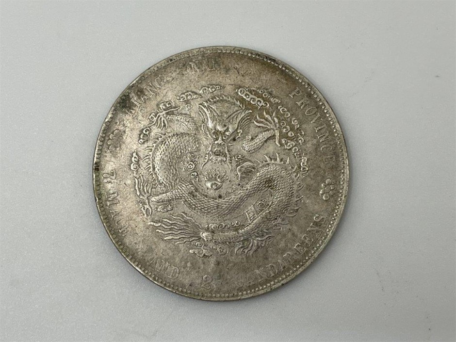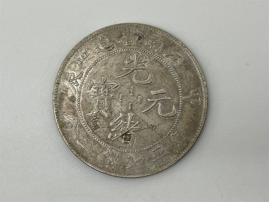 • WORLD, a small group of coins, includes China Kiang-Nan dollar 1904, (KM.145a.12); George IV, Wellington Waterloo medal, edge.. June 18, 1817...; Japan, 100 mon (KM.C7) (4); twenty sen year 31, fifty sen yrs 9 and 12 (KM.24, 50); Abbasid dirhem, year AH 152, al Mohammadiyat mint; others (4) including cast base gold India pagoda, no hallmark visible, tested 9Ct, approx. weight, 2.9gms, 12mm dia. Fine - uncirculated. (14)
