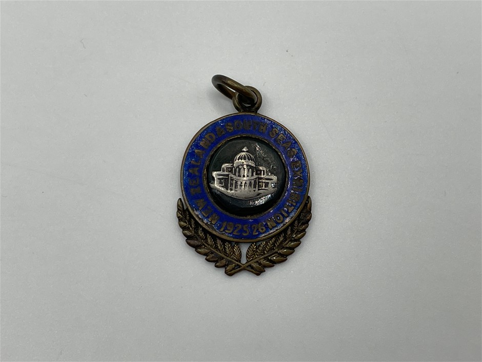 • 1 x New Zealand & South Seas Exhibition, 1925-26, in brass, silver and enamel (25x20mm) (M.1925-26/6), reverse inscribed `Alexander Begg/Music Come.`