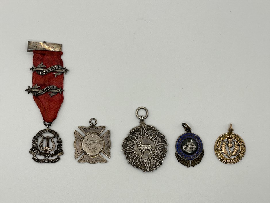 5 x Asstd NZ Society, Exhibition & Club fob medals (1 x in 9Ct gold)