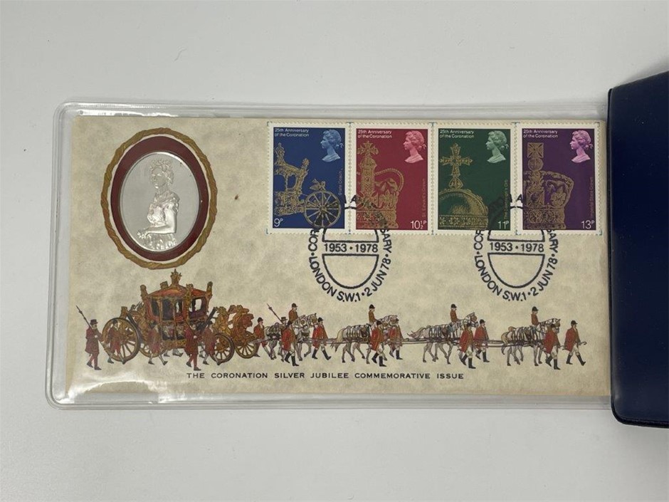 • 1 x 1978 Elizabeth II Jubilee medal and stamp First Day Cover