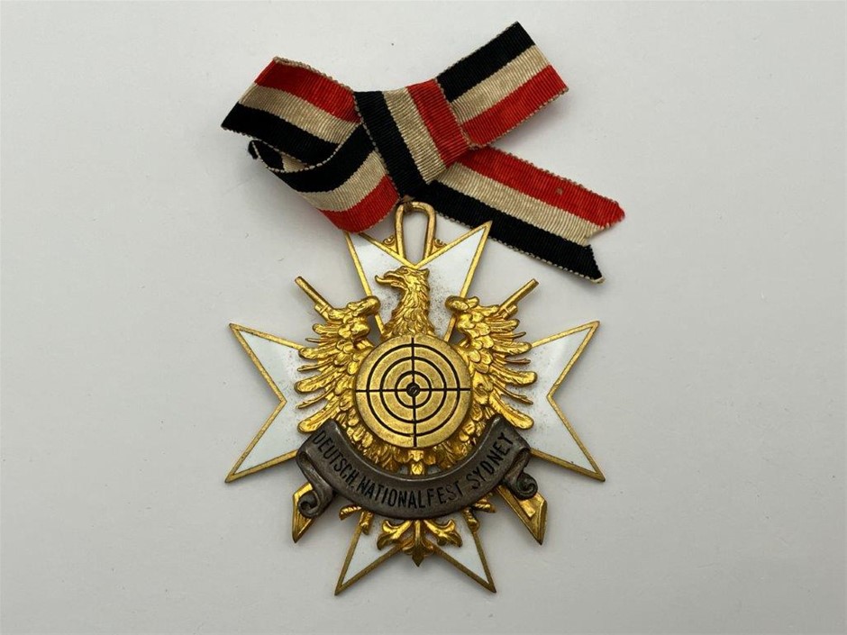 • 1 x Germany/Sydney ornate enamelled medal with ribbon, 60 x 60mm