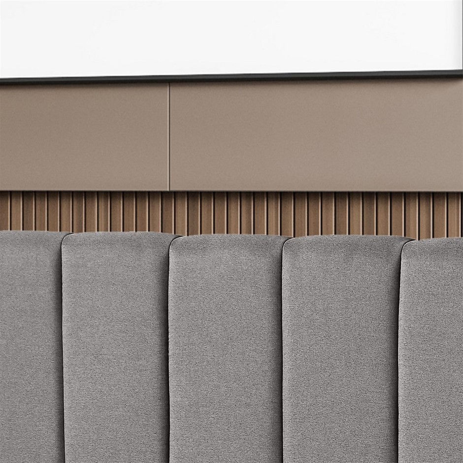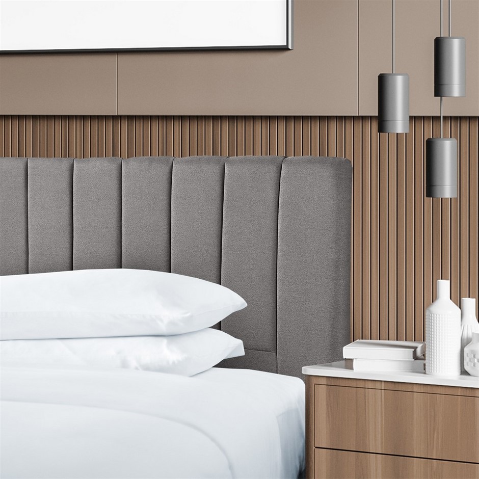 Make a grand statement with the Milano Valencia Bedhead. This designer piece features an extra-long length and comes the gorgeous new range from Milano Decor which includes a range of bedroom furniture.With a classic design, the Valencia will look great in any bedroom. The vertical panels are padded, and the simple clean lines ensure that the bedhead will complement any decor.The headboard delivers plenty of style and can literally transform your bedroom giving it that lift you have been looking for.The modern panelled design with a soft fabricated mid grey finish this bedhead is designed with clean and smooth edges that adds another layer of comfort to the bedroom experience. At 110cm high and with a thickness of 10cm, the Valencia is plush yet still slim lined to fit into any space ensuring that it will suit almost any bedroom design.For optimum use, the bedhead needs to be placed against a wall, and held in position by the bed base.