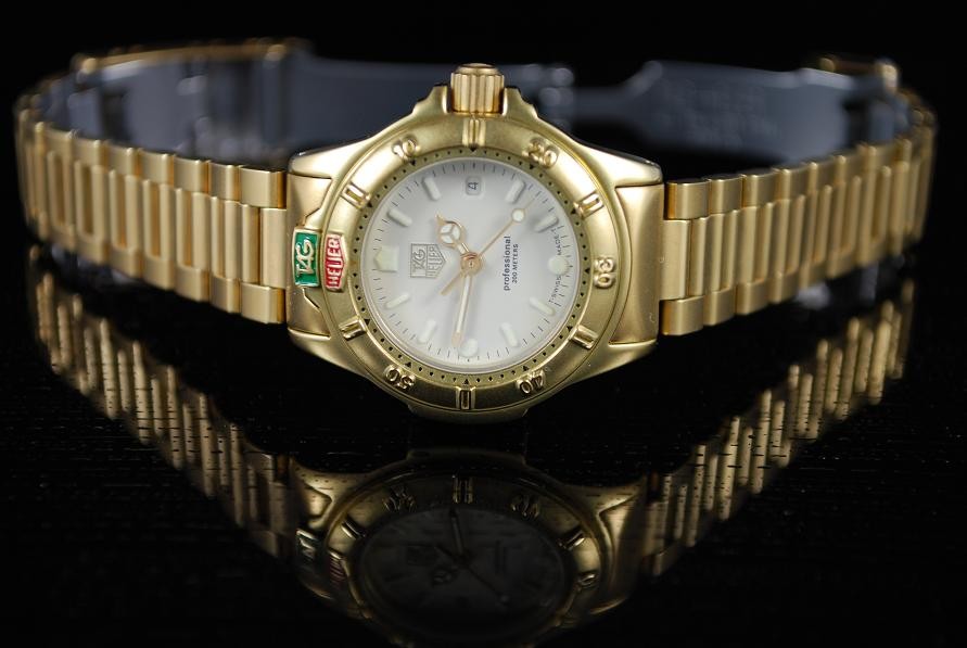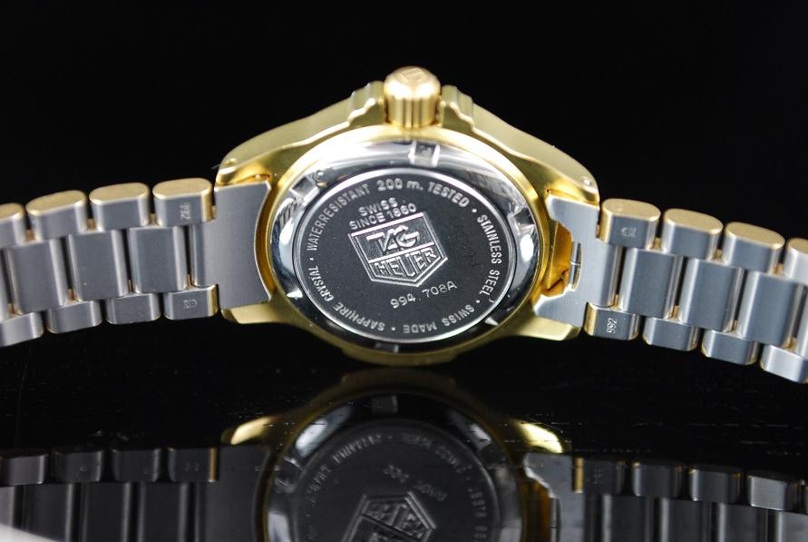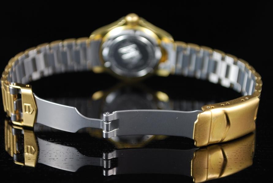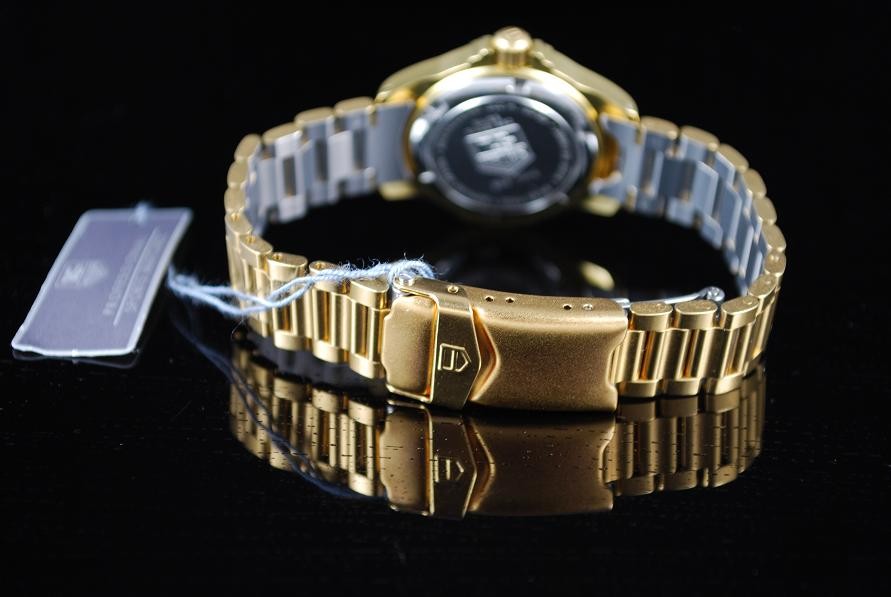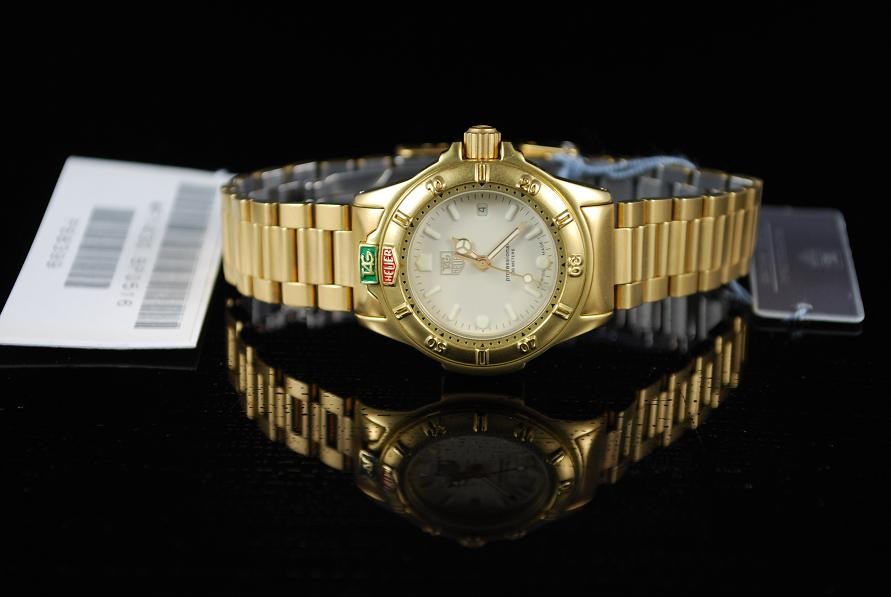 Retail Replacement Value $2950 - A Brand New Ladies Tag Heuer 4000 series quartz 200m water resistant wrist watch with a cream dial, luminescent hands and batons, date at 3 o'clock in a gold plated bracelet. Case Back No: 994.708A’. Comes with Tag Heuer Box. This watch is now discontinued and last Australia RRP supplied by Tag Heuer has been used. Retail replacement as per official agent or distributor. “With this fine Tag Heuer watch, we will also give you a brand new custom made Tag Heuer polished wooden leather box which comes with a leather booklet holder and watch polishing cloth along with a copy of information booklet. Normally valued at $499.00. Though with this sale item, we are adding this custom made Tag Heuer box at no extra cost. So hurry! Be the first to purchase this fine watch along with a custom made Tag Heuer Box. “Hurry while stock lasts!!”