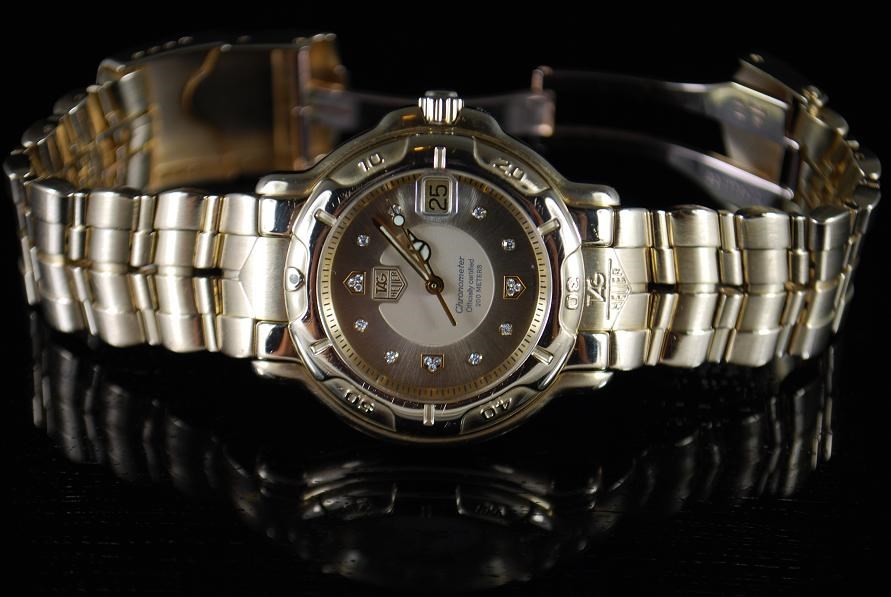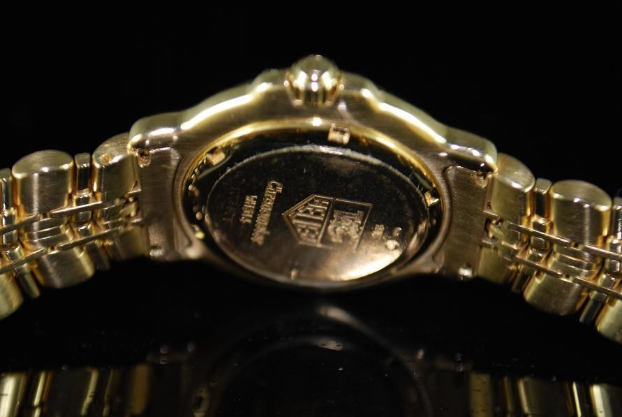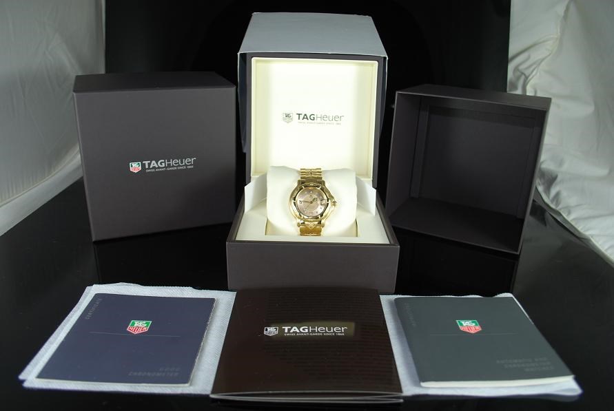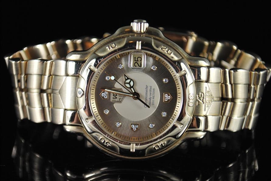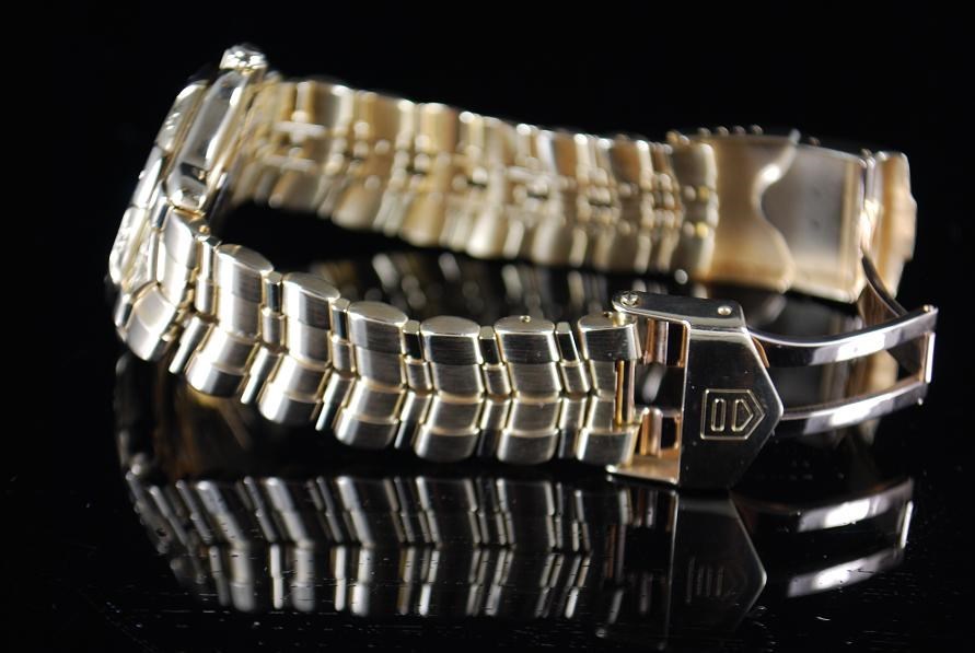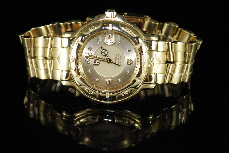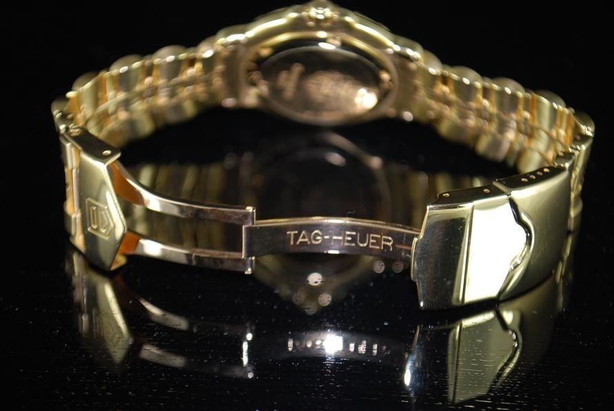 Retail Replacement Value $42,000.00 - One Authentic Gents Tag Heuer 6000 18k Solid Gold Automatic Chronometers watch with 11 diamonds dial in Gold.