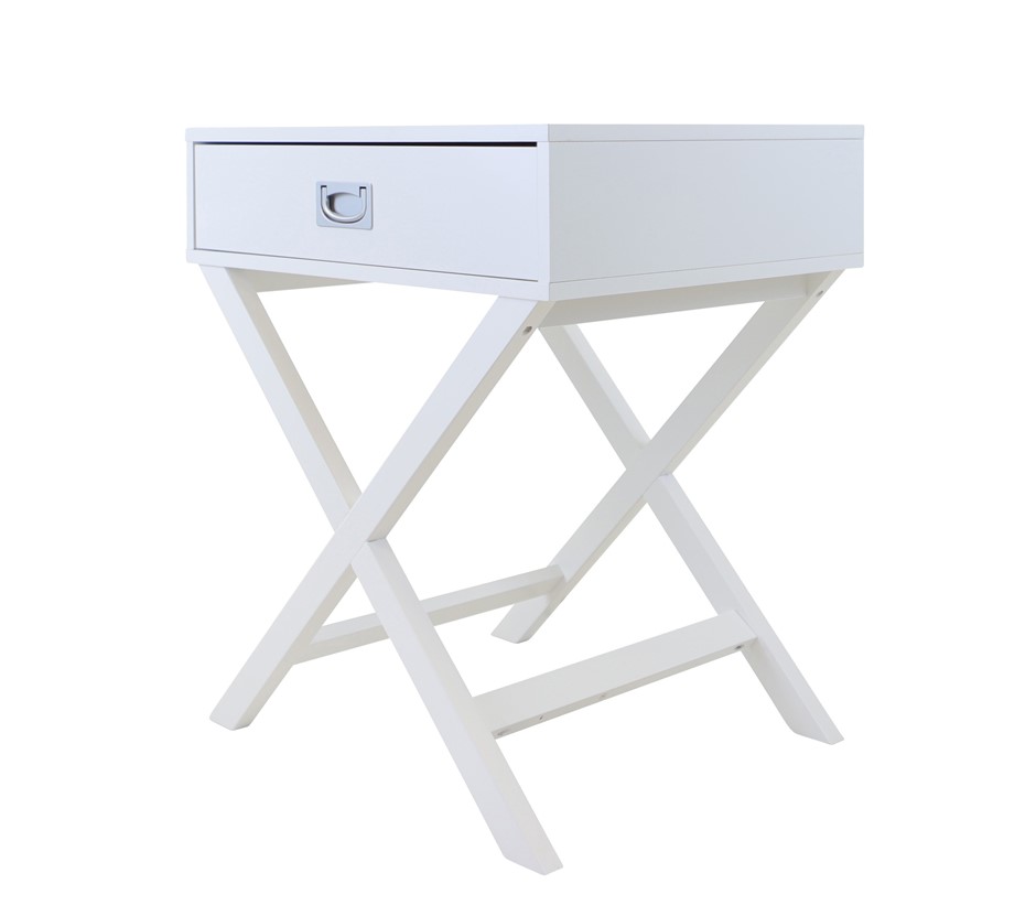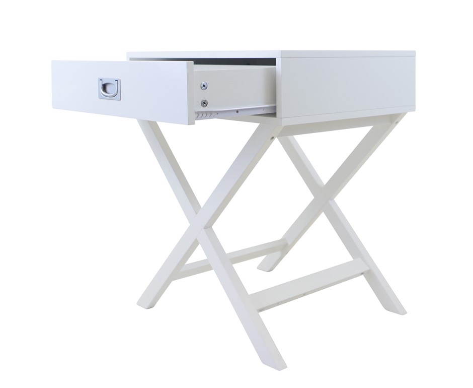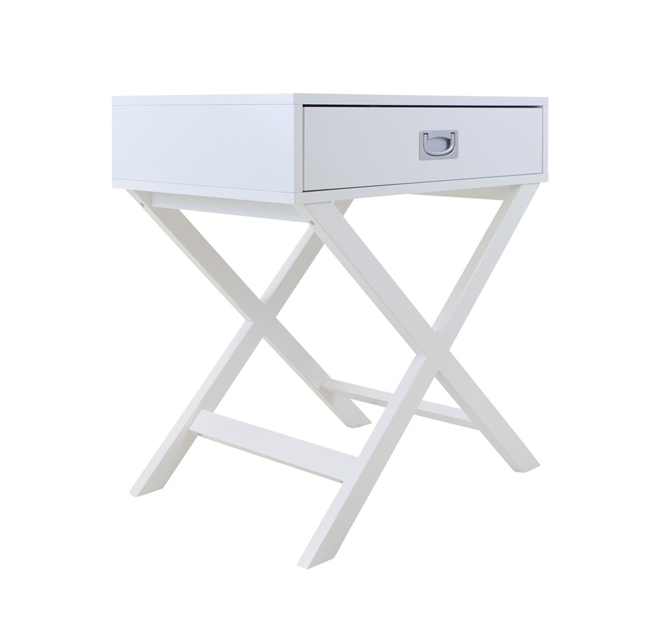 Alexa Cross Leg 1 Drawer Bedside Table - White