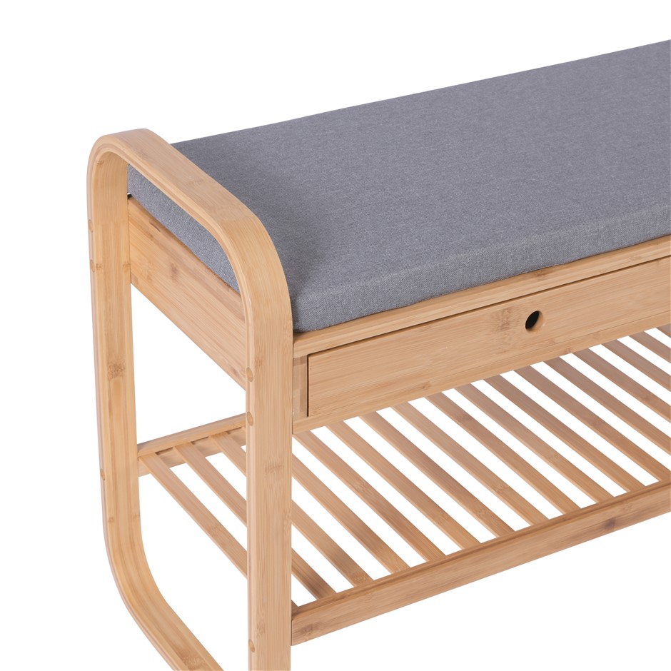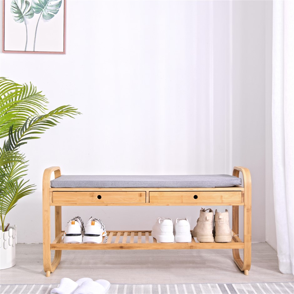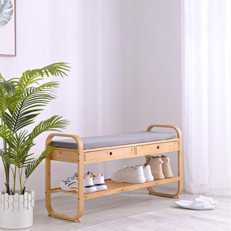 Sherwood Home Seated Shoe Storage Rack and Organiser with Bench - Natural Bamboo - 105x34x55cm (NEW)