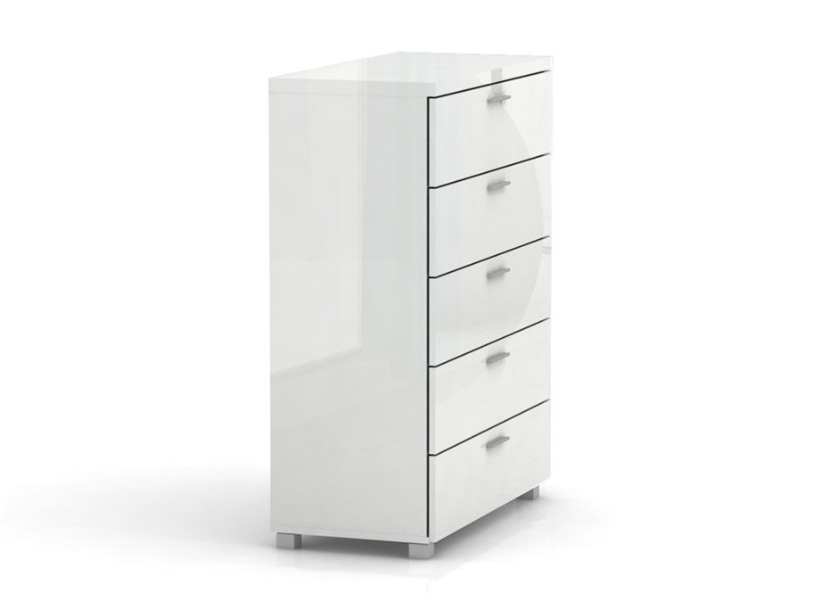 Elisha High Gloss 5 Drawer Tall-Boy Chest - White