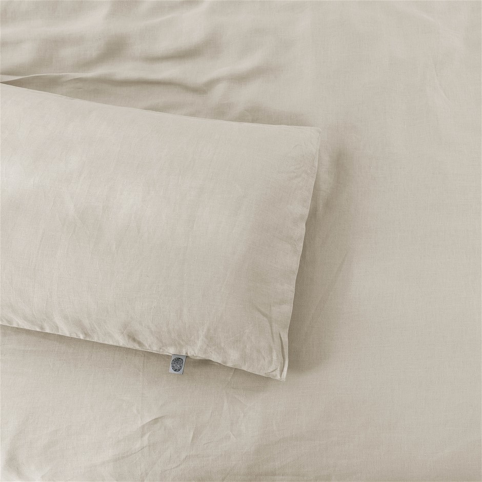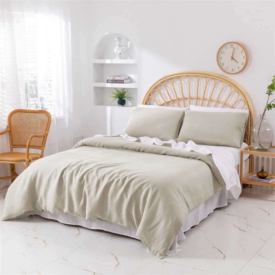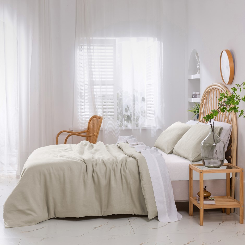 Natural Home Vintage Washed Hemp Linen Quilt Cover Set Oatmeal King Bed (NEW)
