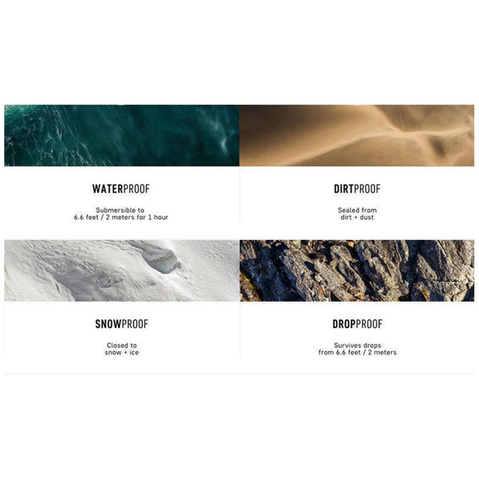 WATERPROOFSubmersible to 6.6 feet / 2 meters for 1 hour