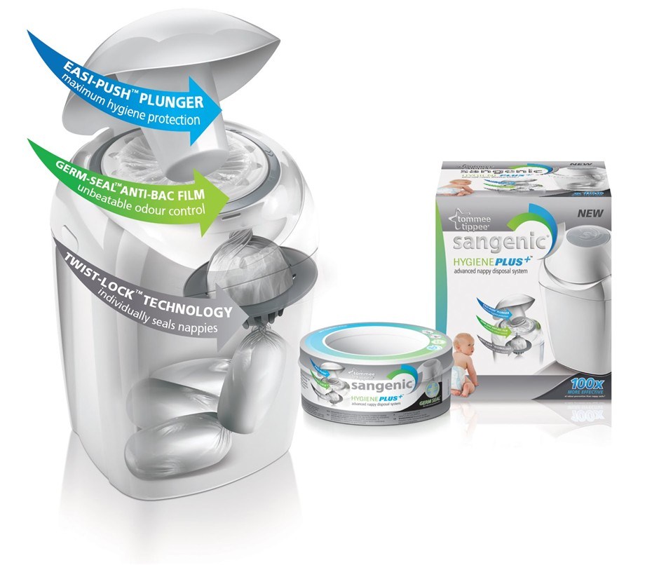 • Germ control is important to all parents with children, and the Hygiene Plus has improved its handling of used nappies to further reduce the impact of germs in the household. It individually wraps and seals dirty nappies in a multi-layer, anti-bacterial film locking away germs and odour.