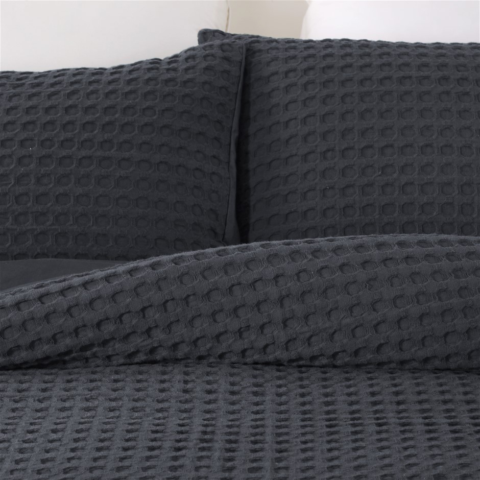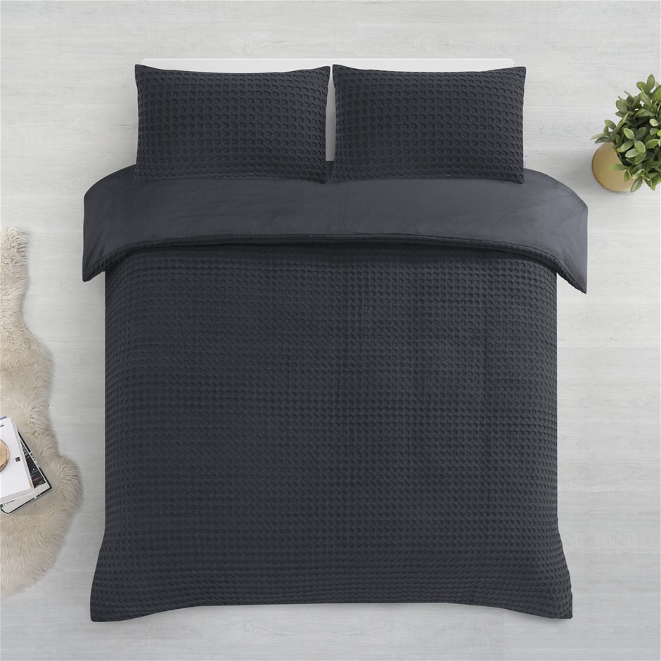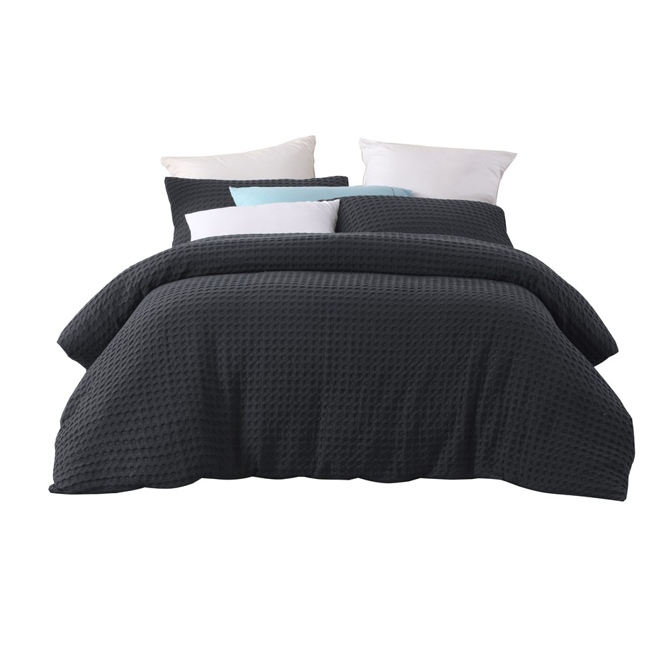 Dreamaker cotton waffle Quilt Cover Set SKB Charcoal (NEW)