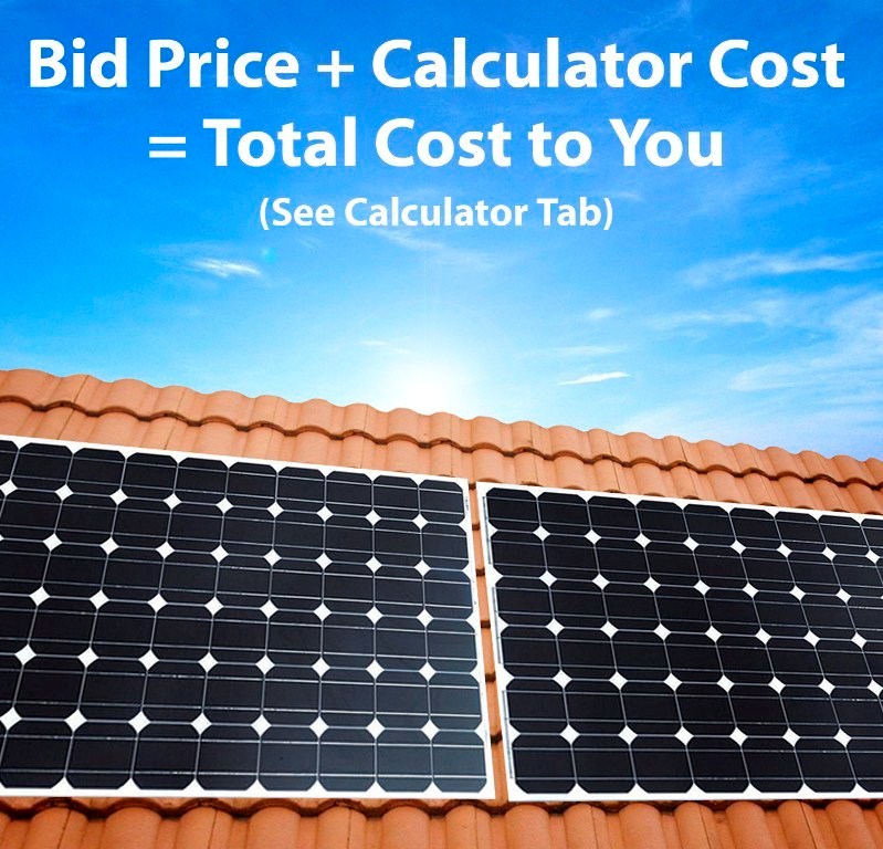 Payable by each Winning Bidder upon Auction Purchase. See Q2 Solar Calculator (above) – This amount is calculated using Your Postcode (Installation Postcode)