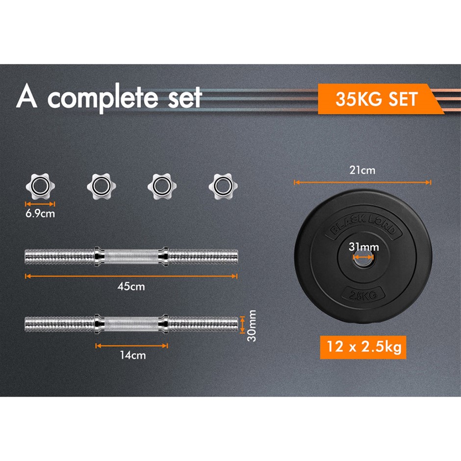 BLACK LORD 35KG Adjustable Dumbbell Set Rubber Weight Plates Lifting Bench (NEW)