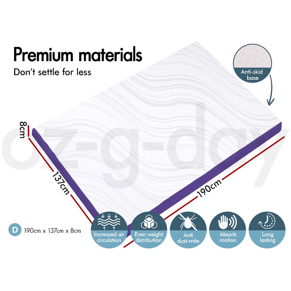 Memory Foam Mattress Topper Lavender Oil Aroma Bamboo 7 Zone 8CM S.E Double (NEW)