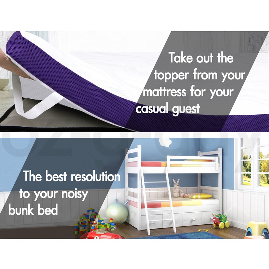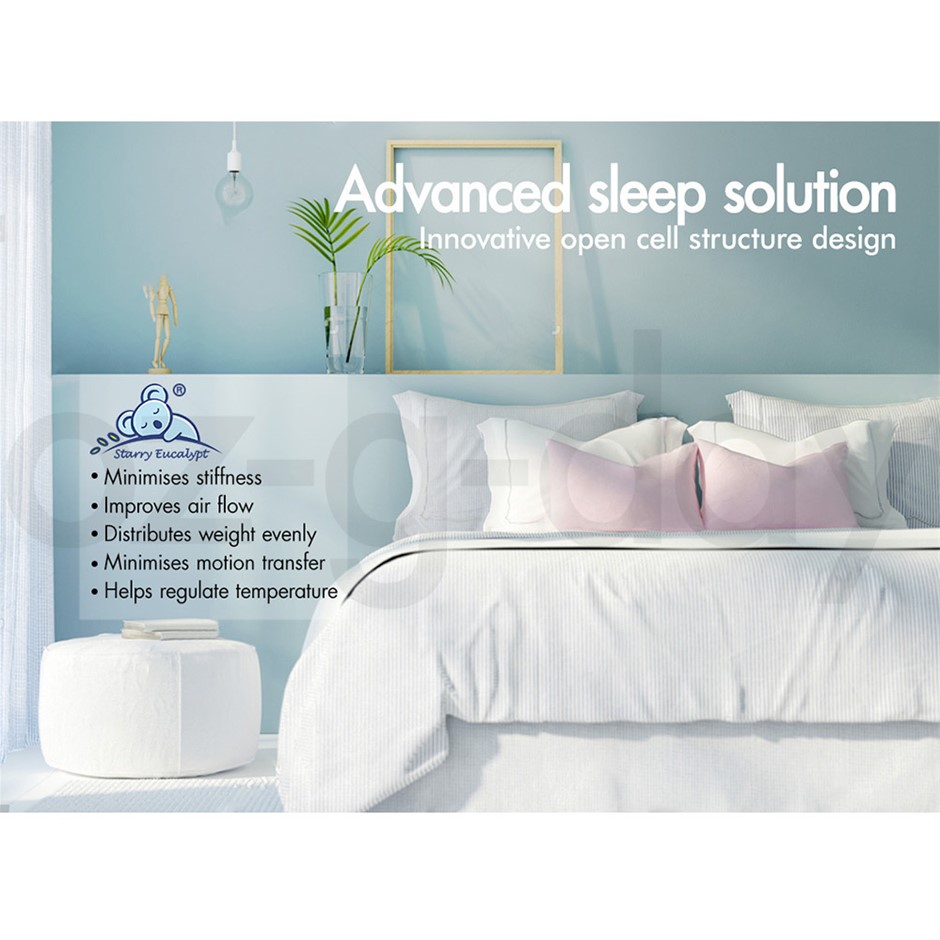 Upgrade your old mattress to luxury enjoyment; take out the topper for your casual guest; keep your noisy bunk bed silent; and take the topper with you in your bumpy camping trip. Starry Eucalypt, "A good night sleep, a good day journey".