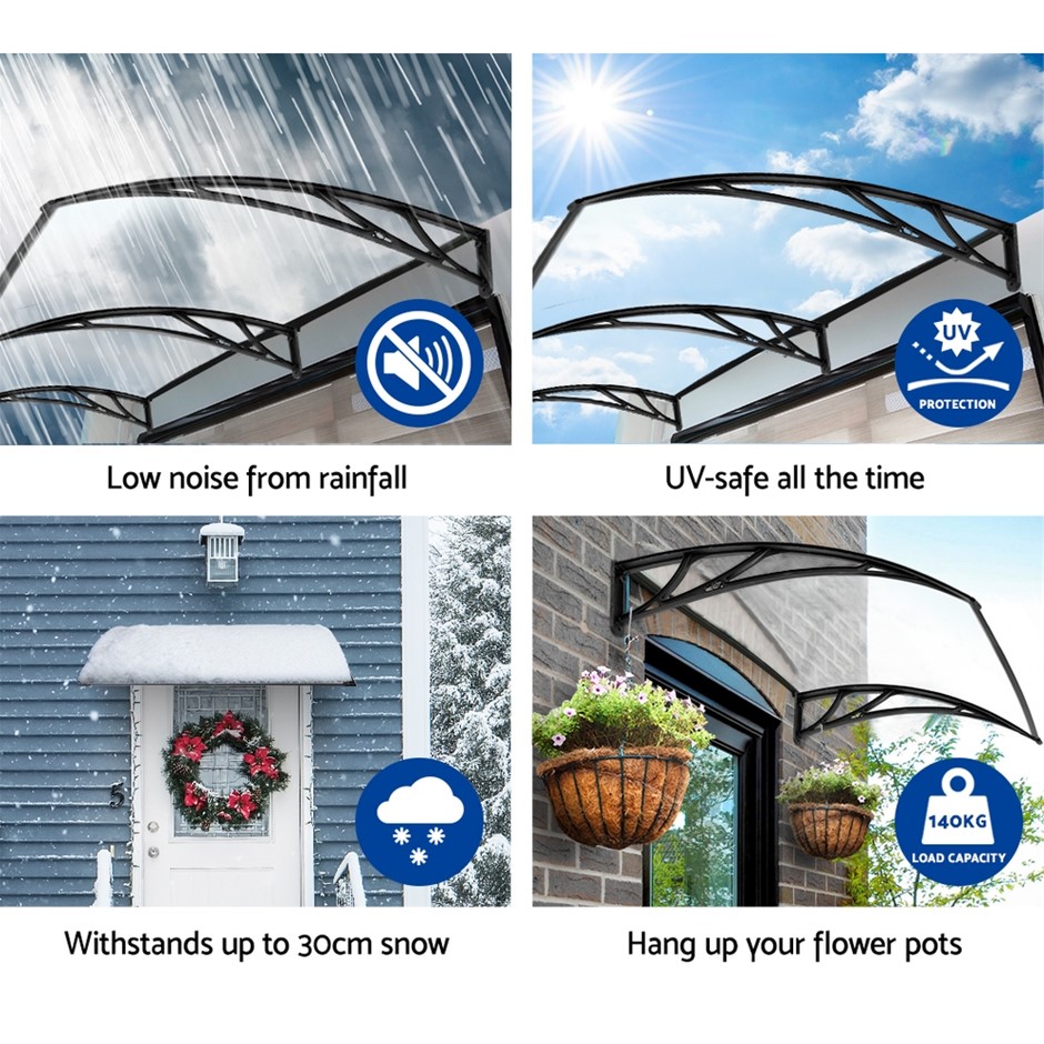 Instahut Window Door Awning Outdoor Solid Polycarbonate Canopy Patio 1mx2m