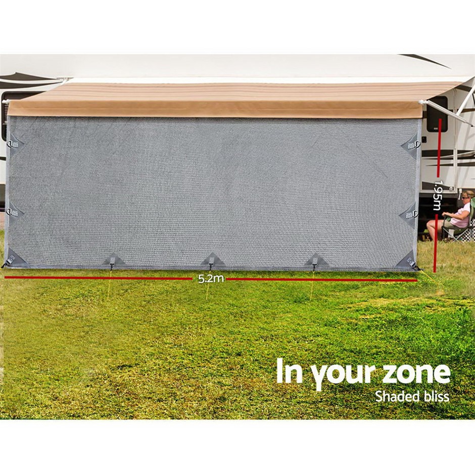 The quality screen features water-repellent 200gsm polyethylene fabric with hemmed edging to prevent fraying and heavy-duty stainless steel D-rings attachment joints. Not least, the screen is compatible for use with popular roll-out awning brands such as Carefree Fiesta and Domestic A&E. And when its time to move on, the screen can be easily stored in the included carry bag for safekeeping.