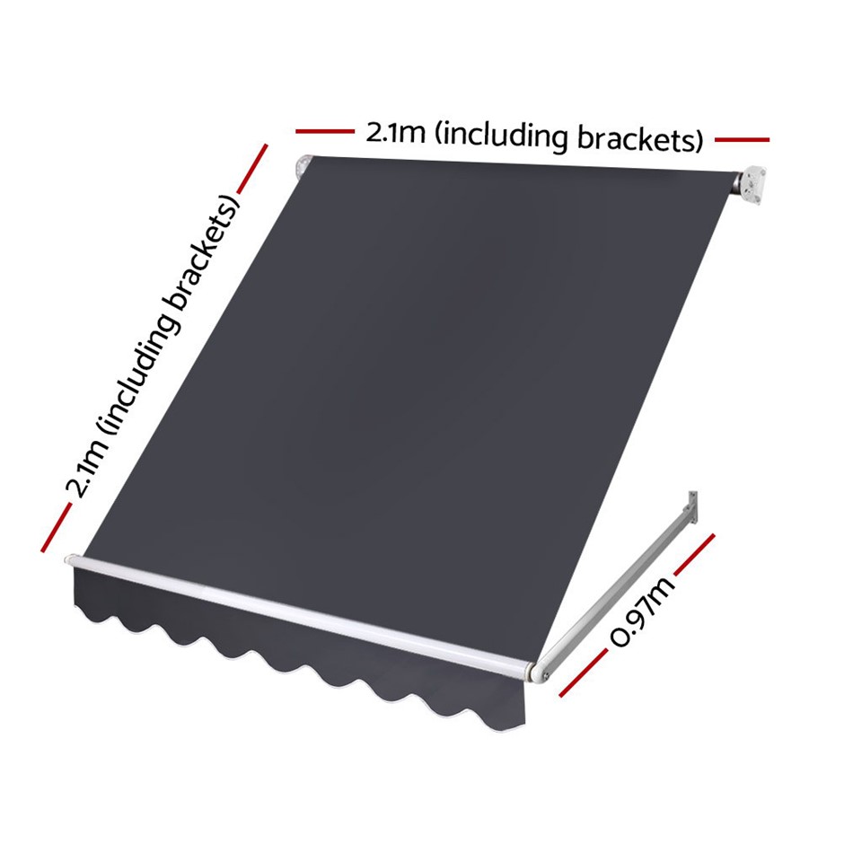 Specifications:Material: Aluminum frame w/ 100% polyesterSize: 2.1m x 2.1m (size include brackets)Colour: GreyAssembly Required:YesPls note:This item comes in 2 package.