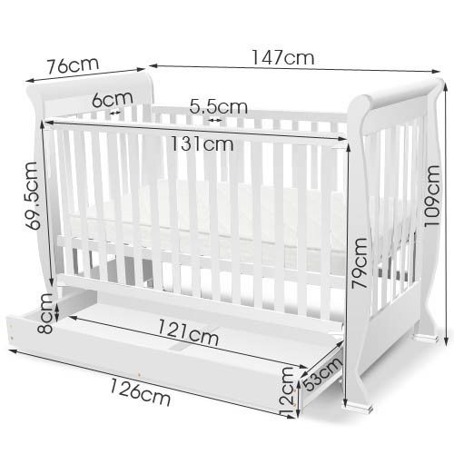 We are parents too, and we understand how important it is to choose a safe and suitable cot for your baby. This cute and adorable 3 in 1 baby cot will not only save you time and money, but also save your space too! It can be transformed into an infant bed, toddler bed or sofa for your preference, so you no longer need to buy new furniture when your child grows up or to accommodate your second baby. Made from solid New Zealand Pine Wood, the baby cot comes with a compartment drawer, toddlers rail, and a base adjustable to two levels. It also comes with a FREE high density foam mattress! What a bargain!