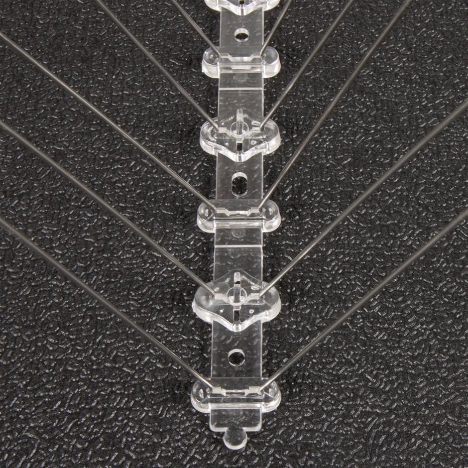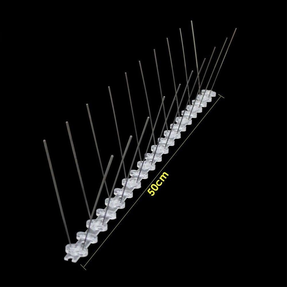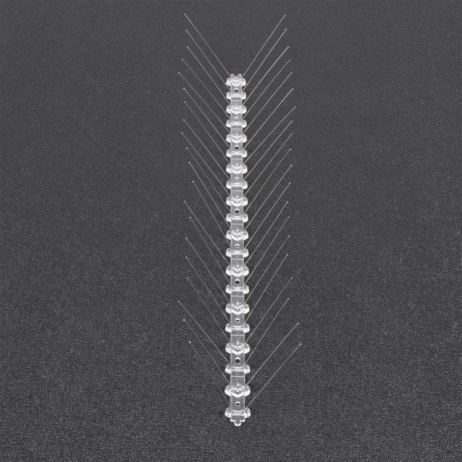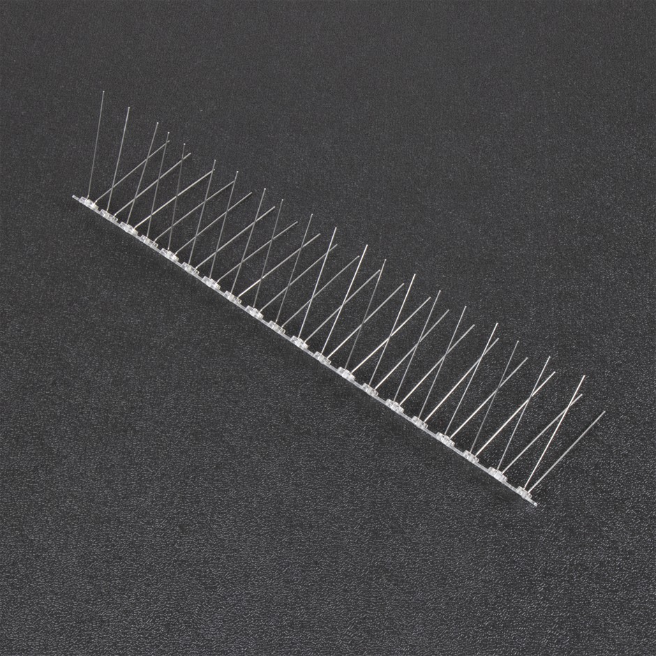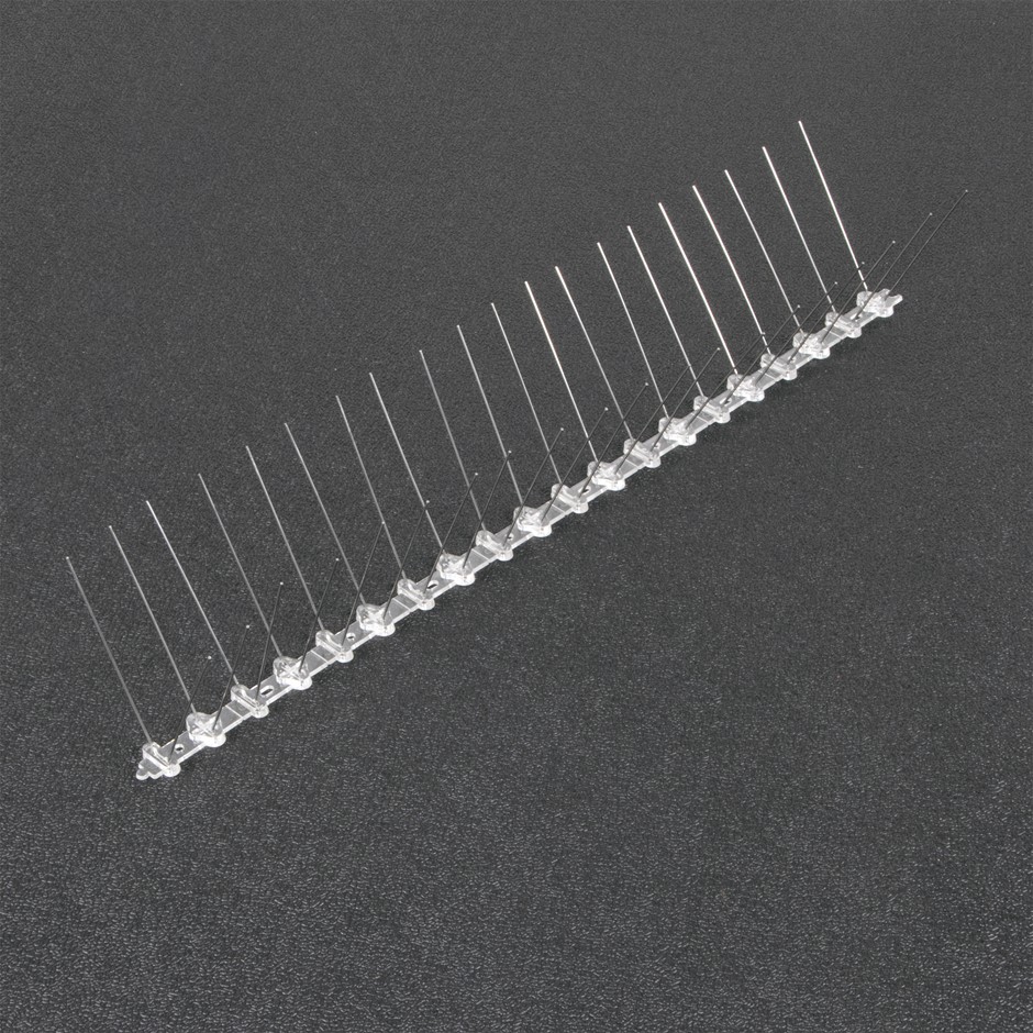 Love birds but don't like the mess pigeons, gulls, or crows make when they take up residence on your property? These bird spikes from Randy & Travis Machinery might look scary, but they're completely humane. Although they don't hurt the birds, these spikes keep roosting birds - and their germ-spreading droppings - away from your home. It's not just the germs. Bird droppings are corrosive, eating through almost every kind of material over time. Protect your home or business against the damage roosting birds can do with these highly effective spikes. They serve as a physical barrier to them, keeping them from perching on your windowsills, ledges, signs, gutters, pipes, and chimneys.