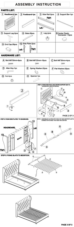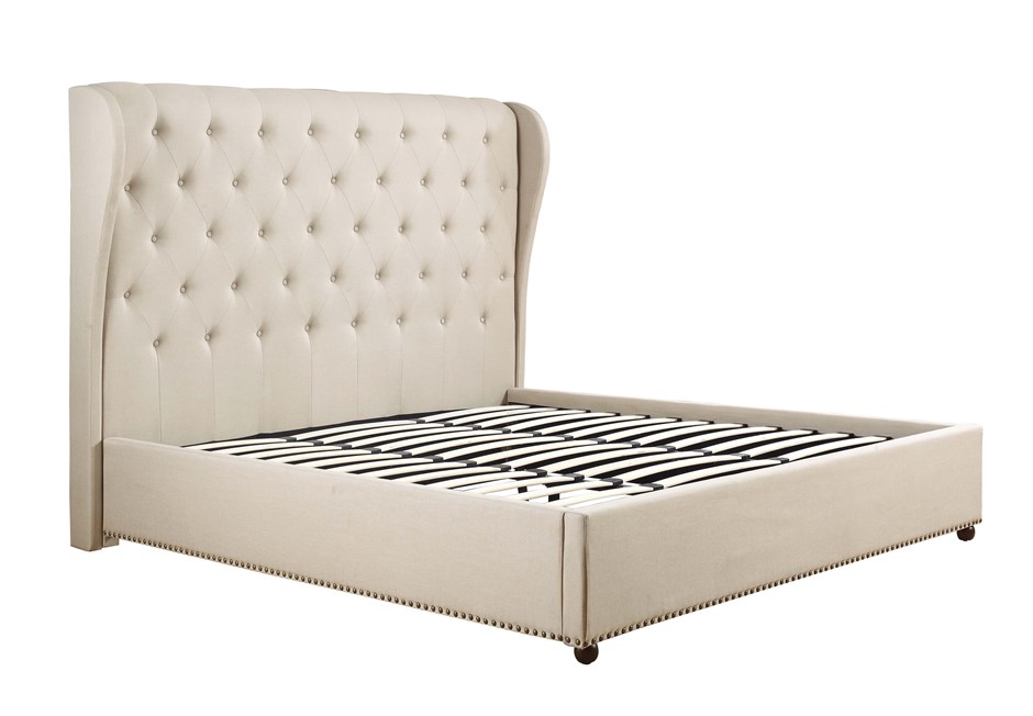 ? French Provincial Design Wing Upholstered Bed? Handcrafted Diamond-Tufted Detailing for a Stylish Look? High Tufted Headboard with Buttons? Metal Stud Embedded on Edge? Sturdy Construction with Metal Middle Support Bar? Bedhead thickness with the wings 29cm? Bentwood Slat? Beautiful Wooden Leg? Smart Box Packaging? Simple Home Assembly Required