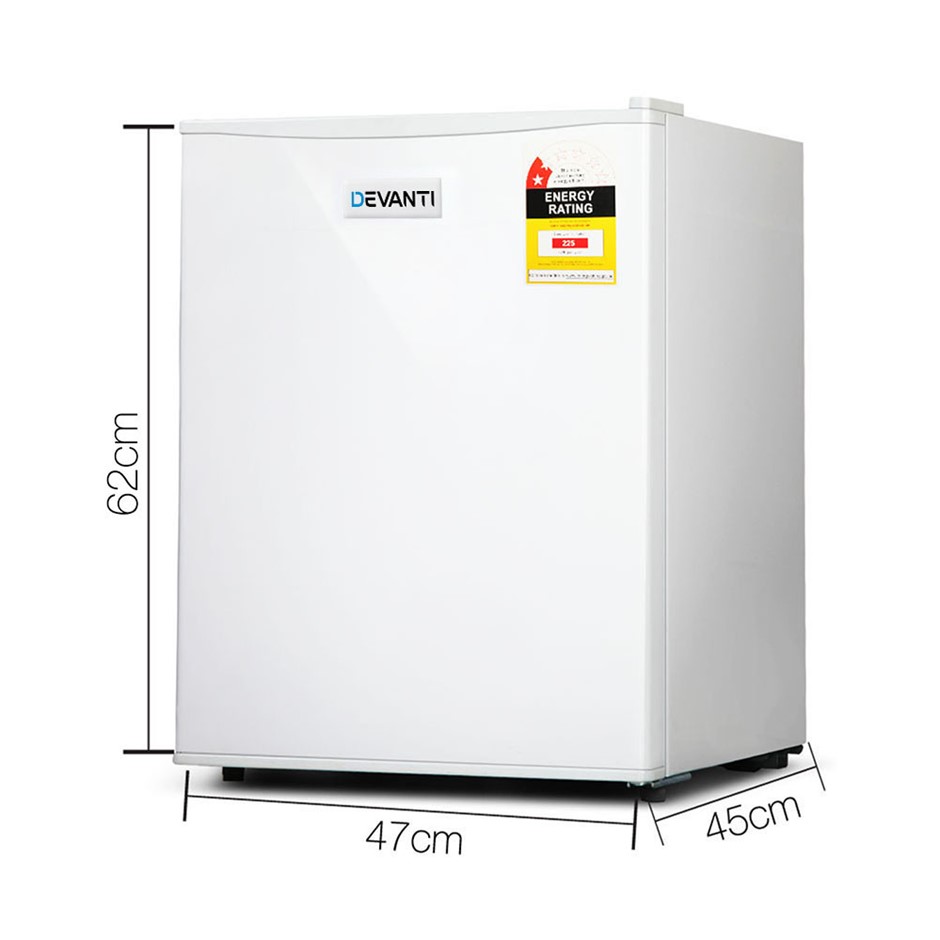 70L Mini Bar Fridge Suitable for your caravan, apartment, work kitchen or holiday house, this handy mini bar fridge is great for accommodating a variety of food and beverages with chill compartment and door compartment for storing drinks and sauces. Designed with 6 adjustable temperature levels, you can choose how chill you like your food and drinks to be. Made with PVC door seal, ensuring the food is stored well for freshness. The feet are also adjustable, in case of any uneven flooring. This Devanti fridge uses the R600A refrigerant and freon-free; a greener option for the environment with a shorter life in the atmosphere and less impact on global warming.