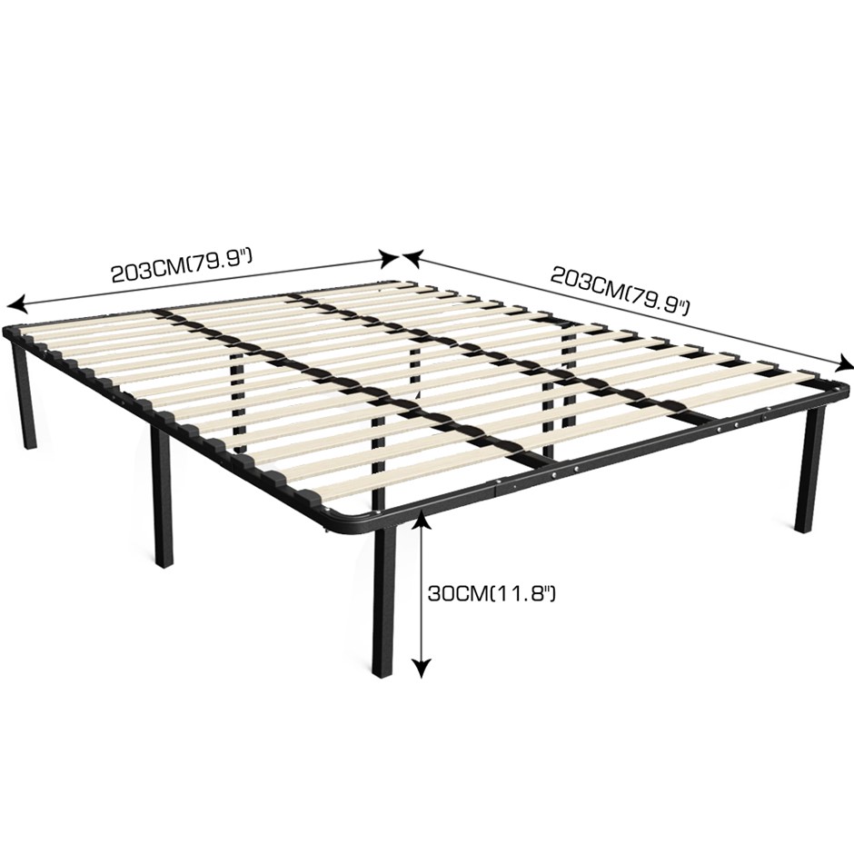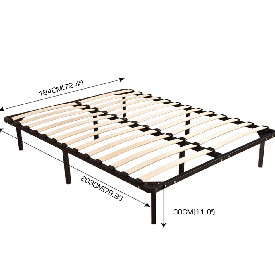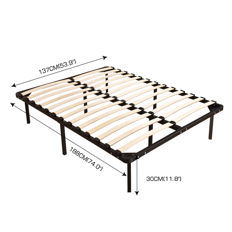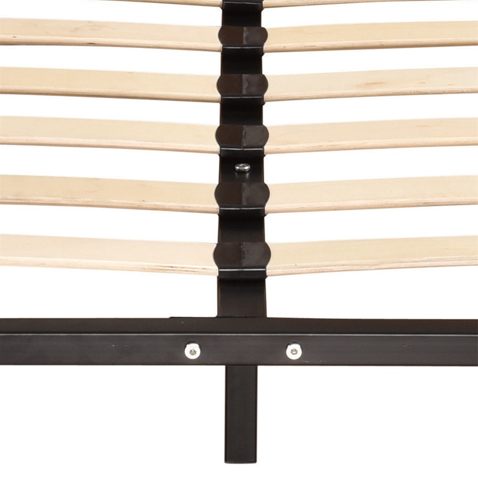 A perfect addition to your bedroom. A design you will cherish and fall in love with. For great support, we have made the entire frame from enhanced metal with black powered coating. For added stability, a central metal frame is provided which ensures the weight applied has distributed evenly along with the metal frame. Wood slates are provided to prevent overtime sagging. The metal frame is supported on rugged metal legs. Easily store all your belonging underneath the bedframe. Very easy to assemble with simple instruction.