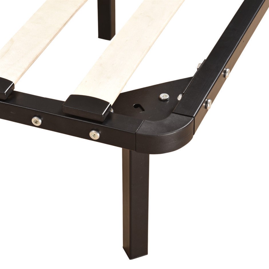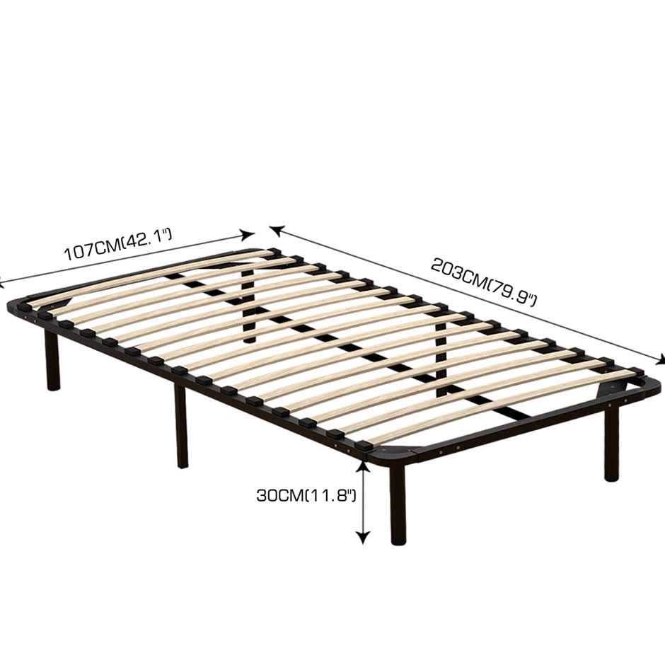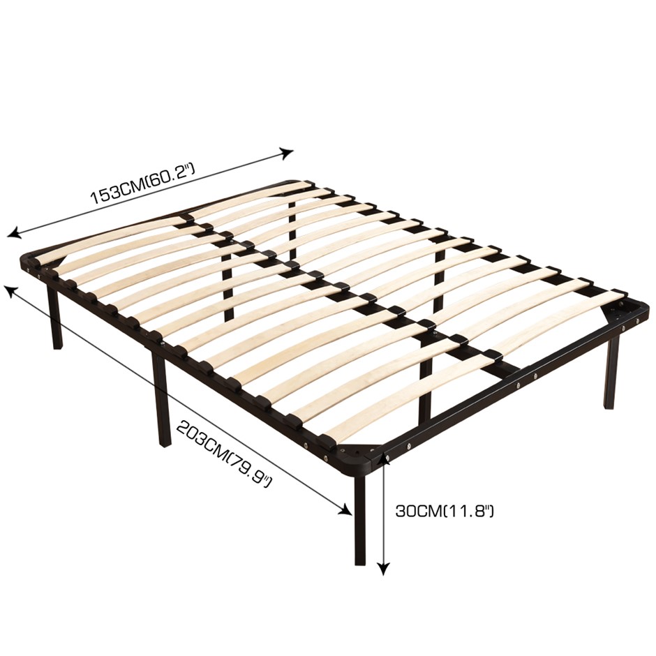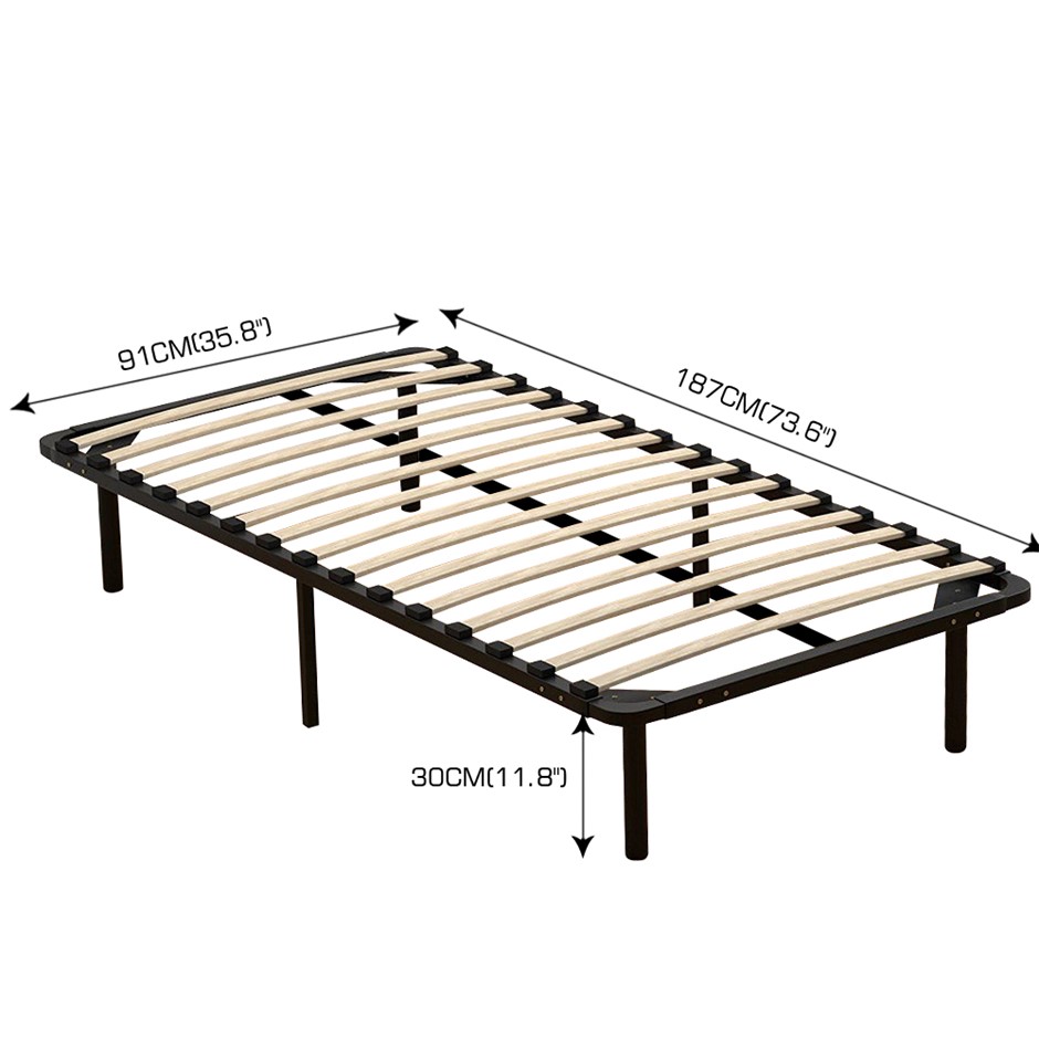 A perfect addition to your bedroom. A design you will cherish and fall in love with. For great support, we have made the entire frame from enhanced metal with black powered coating. For added stability, a central metal frame is provided which ensures the weight applied has distributed evenly along with the metal frame. Wood slates are provided to prevent overtime sagging. The metal frame is supported on rugged metal legs. Easily store all your belonging underneath the bedframe. Very easy to assemble with simple instruction.