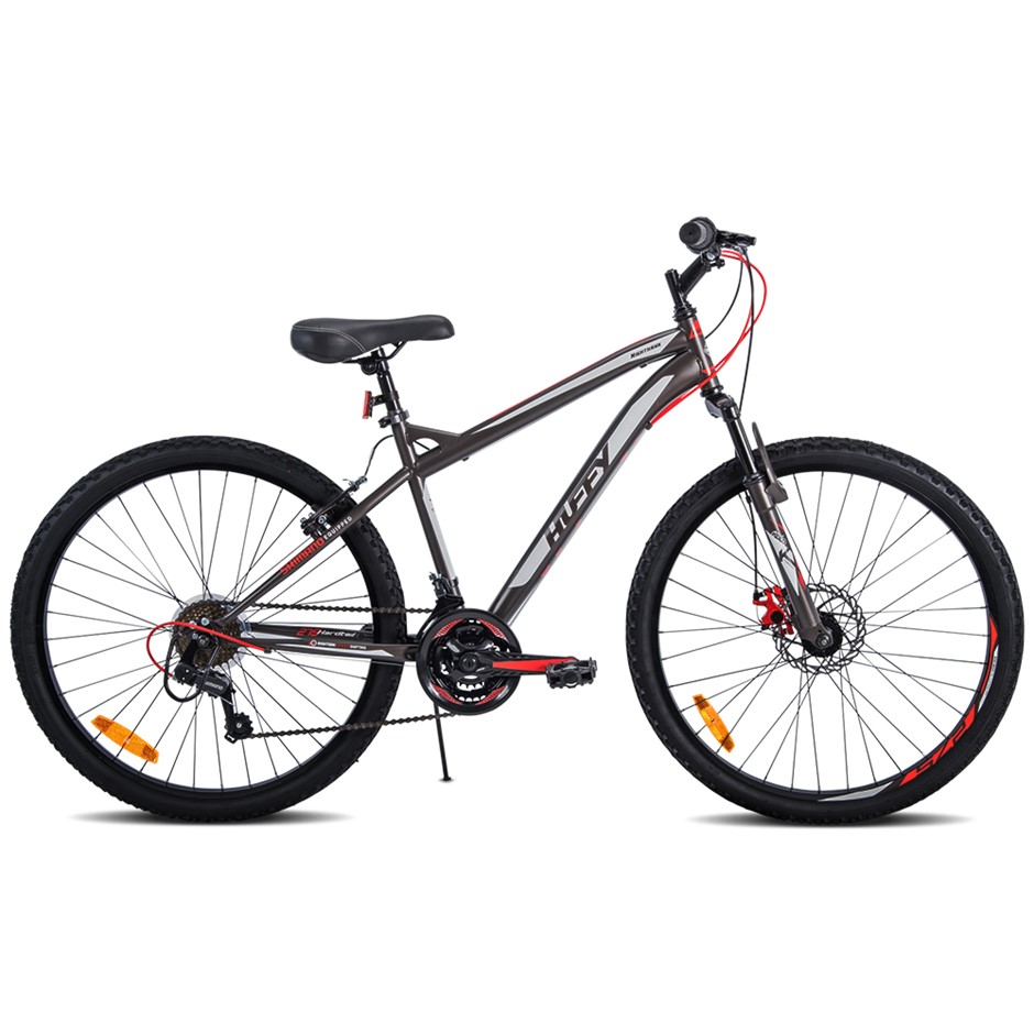 When the going gets tough; our Huffy 27.5 mountain bike is an absolute thriller. The aluminium dual suspension frame combines with the steel a-head fork that delivers outstanding performance for a responsive ride on any terrain and bumps. It comes with 18-speed micro-shift twist shifter drive train with Shimano TZ-31 rear derailleur for smooth shifting. The superior comfort-touch package includes a premium padded saddle and dual-density Krayton handle bar grips and dual-density pedals. The superb front disc and rear linear pull brakes combine to ensure firm braking at all times. Also; a 3-piece Kolo alloy crank adds further durability. The bike also features 27.5 over-size tyres for good grip and sturdy alloy rims for extra strength and durability. Not least; the padded saddle seat height can be easily adjusted for up to 130mm with the alloy quick release clamp. Recommended for people between 168cm and 195cm in height.