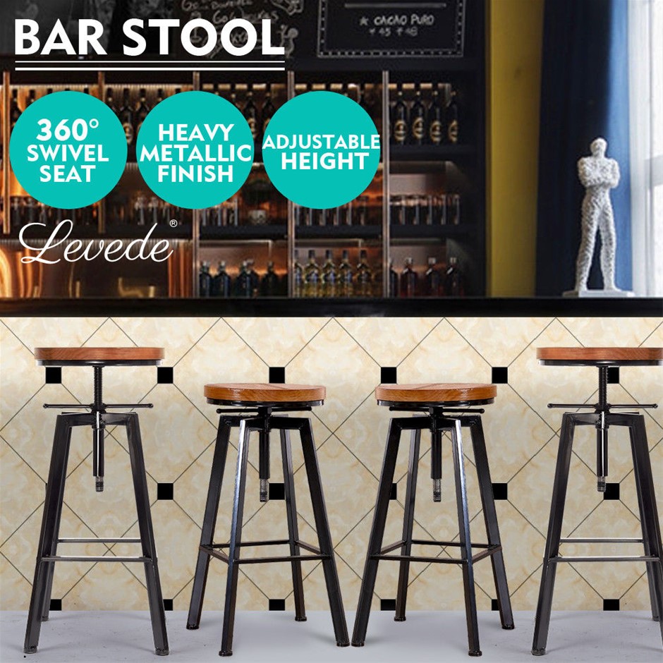 4x Levede Industrial Bar Stools Kitchen Stool Wooden s Swivel Vintage