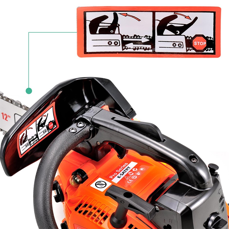 With balanced weight distribution design and double recoil combined system, the chainsaw is very easy to operate and with a short start-up time. This unit comes with comfortable ergonomic grab bar, balanced weight distribution and a set of accessories for total peace of mind. Comes with an automatic braking system, which can also be manually operated, to stop saw chain rotation upon occurrence of kickback during operation for extra safety.