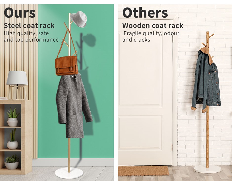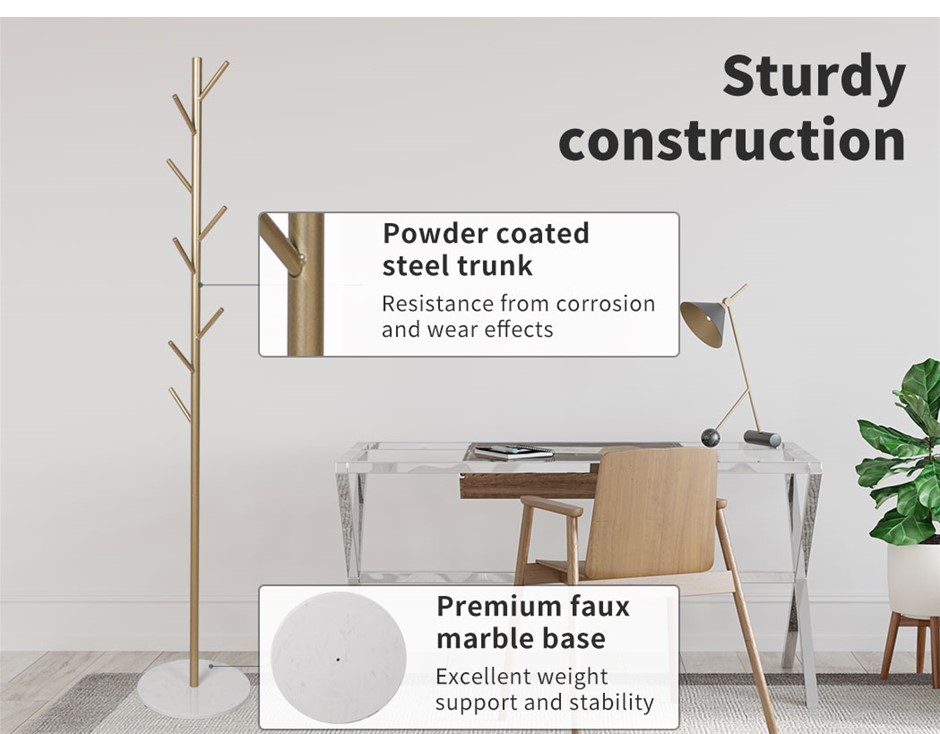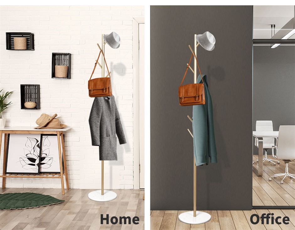 This coat rack is designed with quality and style in mind. To make it extra durable and strong, a special combination of steel and marble is used. Steel provides it much needed agility and marble enhances its look. Highly resistant to corrosion. Do not worry if liquids fall on it, it can withstand it all. A product that is worth buying should have quality and style within. With our product, you get exceptional quality, extra durability, and elegant style. Powder coating added extra stability and steadiness. A beautiful and classic design, a simplistic product yet enduring symbol of royalty. Suitable for hallway, near the doorway, in your bedroom, and many more. Designed to store a good amount of your clothes. Very easy to install with simple instructions.