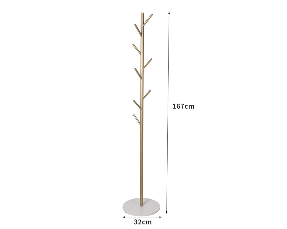 Trunk material: SteelBase material: Faux marbleTrunk dimension: 167cm x 3cm x 3cm Base dimension: 32cm x 32cm x 1.5cmColour: Golden