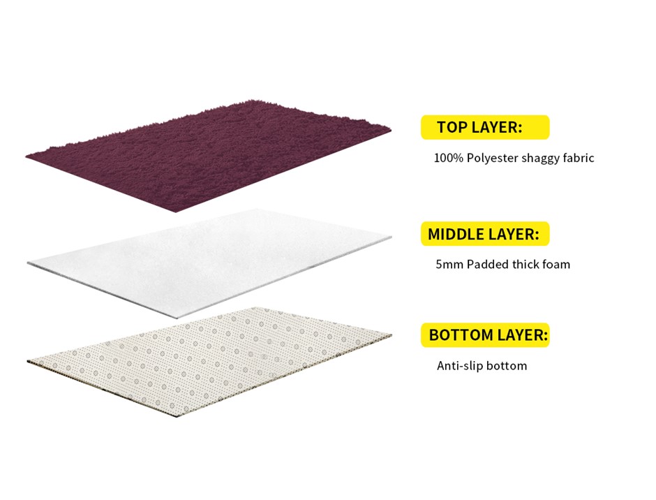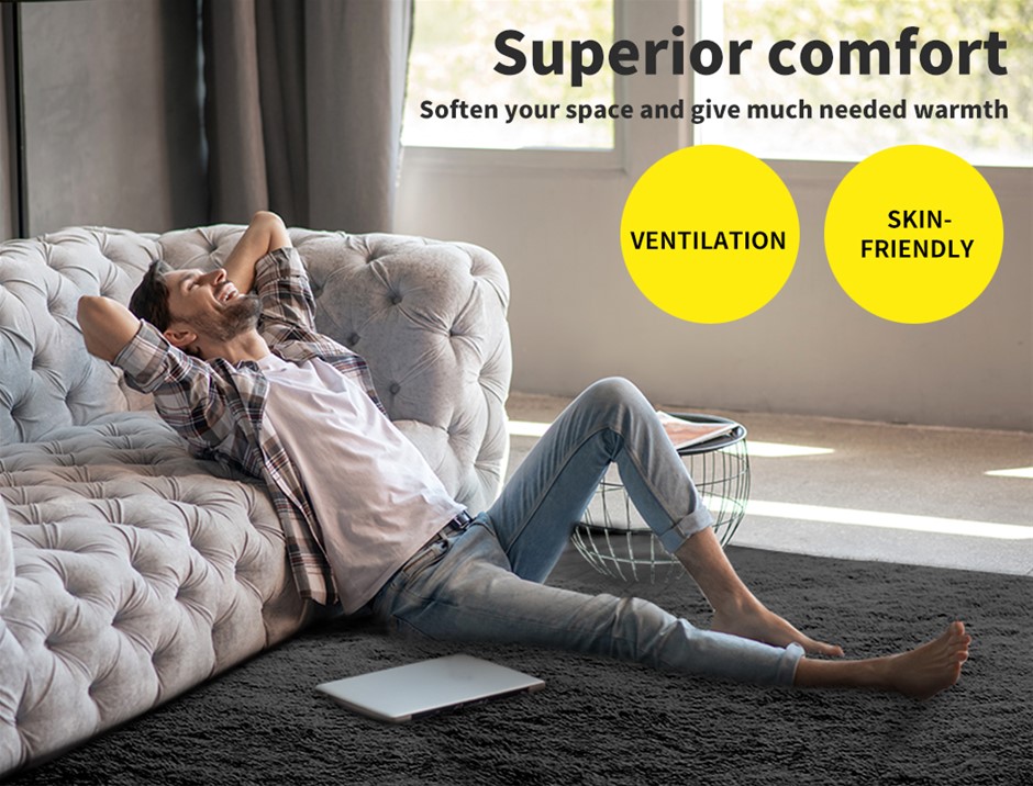 Our Floor Rug is specifically designed to brighten your room with joy. Perfect for your room decoration, enhances its looks. Ultimate resting spot with its shaggy feel surface, a 35mm high pile. Just lay down and relax on it. Gives you a much-needed space. Provides a superior comfort, soft to touch and gives a much need warmth. Protects your precious floor from wear and tear, use well without the fear of damaging the floor. Designed to provide you a peace of mind. A healthy choice goes easy on you skin, truly skin-friendly in nature with better ventilation. Great workmanship, stable to use, non-slip surface due to its silicone bottom. Top layer is made of 100% polyester with shaggy feel, middle layer is made of 5mm padded thick foam and bottom layer is anti-slip in nature. Has no wrinkles or creases, we ship it as a roller-up rug rather than folded. Gives you comfort and much needed peace of mind.