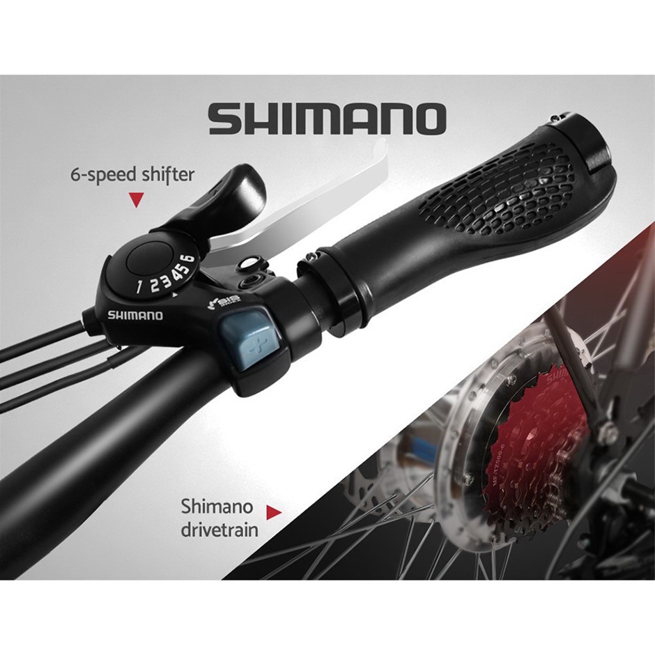 For effortless riding, look no further than our Phoenix Electric Bike. With its 10Ah lithium-ion battery, this astounding electric bike can really go places with as far as 40km on a single charge. The ever-dependable 250W brushless motor can deliver a maximum street-legal speed of up to 25km/h for every cycling activity. Built to last, the bicycle features an aluminium alloy frame that is lightweight and yet strong and sturdy. Better still, the electric bicycle is also loaded with a host of useful features that makes riding it a pleasure. Such as the high-quality Shimano 6-speed shifter mated to large 27? tyres for smoother cruising, thick cushioned seat for extra comfort, front and rear disc brakes for more effective braking and not least, front fork suspension that makes going over rough terrain a less jaw-juggling prospect. At the back, a strong bag rack ensures firm storage while an LED headlight makes night riding as clear as day. With the Phoenix electric bike, getting there is so much more enjoyable with every destination.