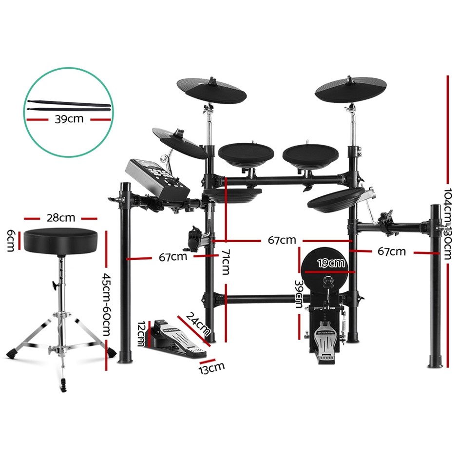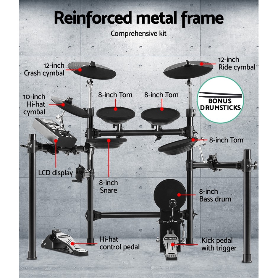 Package Content8-pc Electric Drum Kit X1Drum Sticks X1 PairDrum Stool X1